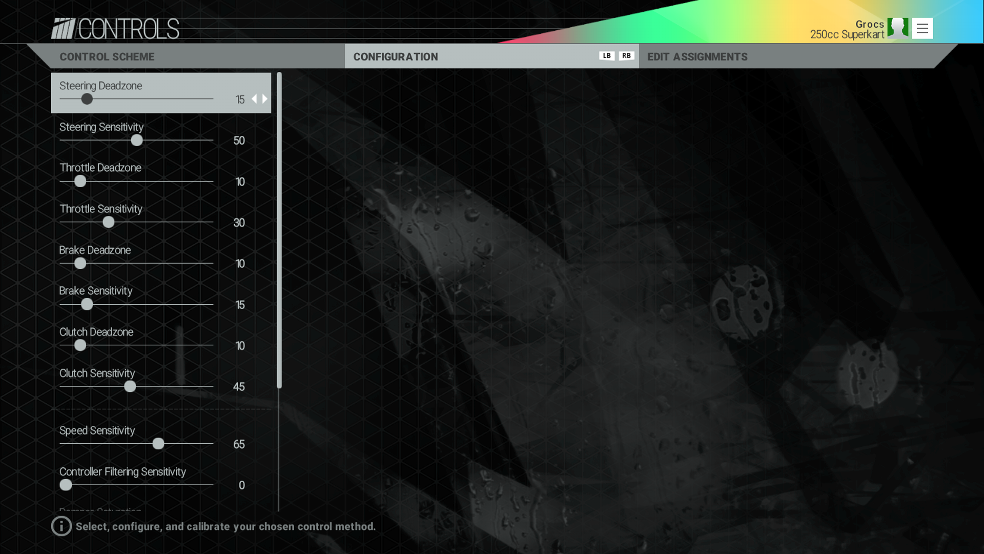 Now you don’t have to tweak your controller too much as the new defaults with the patch are really quite good. It takes a couple of races to get use to the sensitive handling but I like the new settings. For those who don’t want to reset your settings (which include the controller button mappings) refer to the screen grabs below so you can manually tweak them yourself without having to reset to factory default.