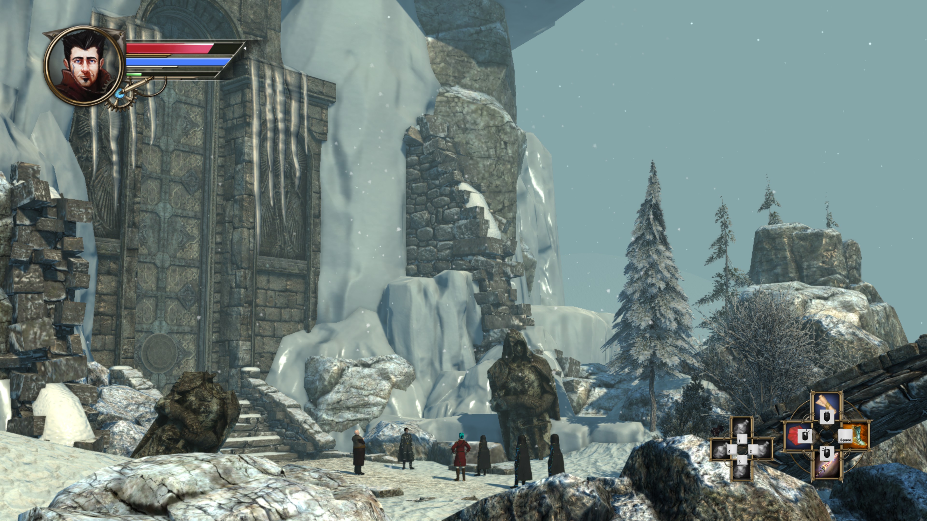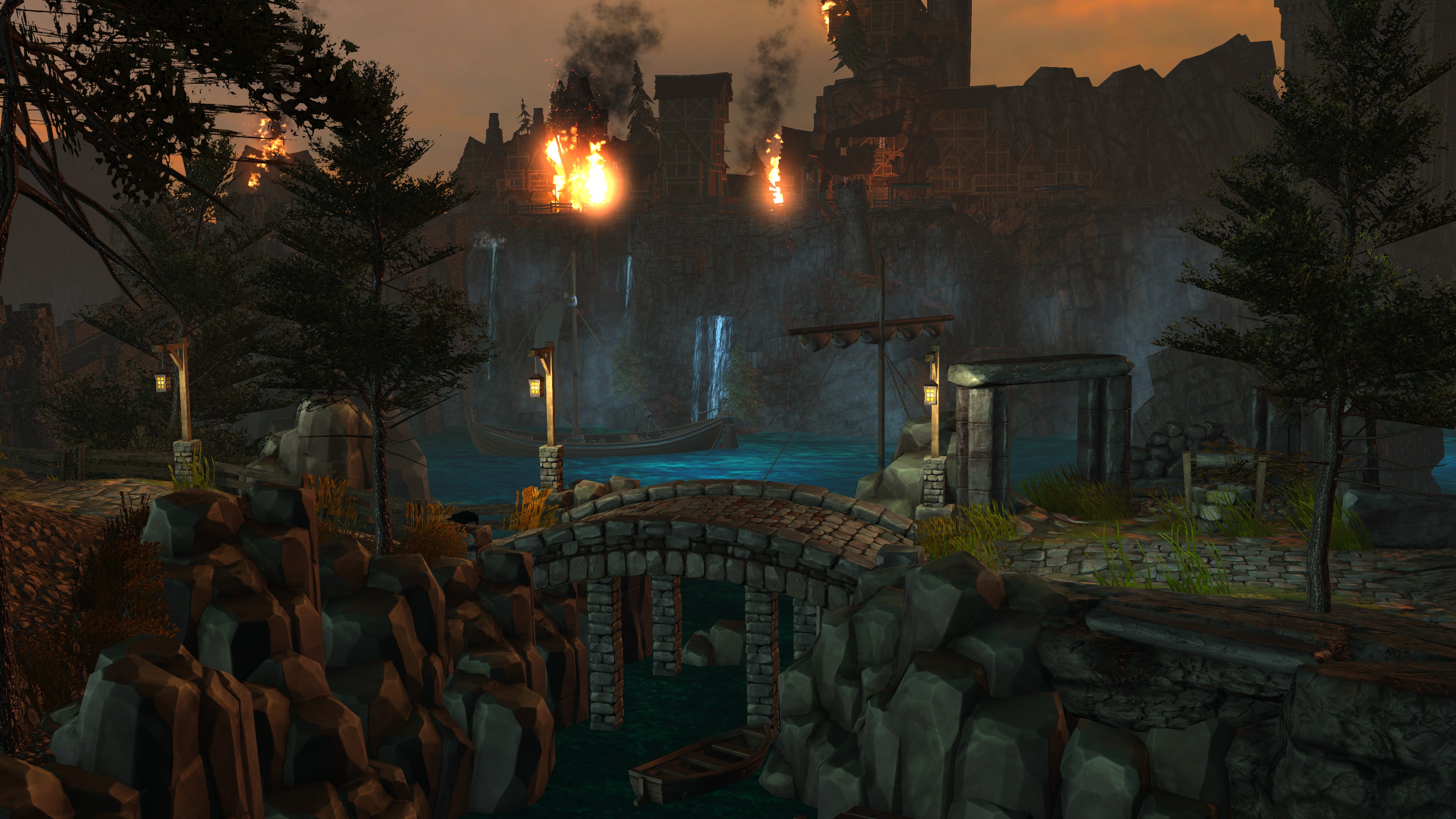 Visually the game is bight and cheerful with an exaggerated art style reminiscent of Fable that isn’t too detailed but scales nicely to higher resolutions. The atmosphere is helped through some good use of animation – a couple of dancers inside an inn might not seem like much of a big deal but seeing how well they moved about really stood out. Character portraits that are used during conversations are a nice touch that really help fill in the details that the character models may miss.