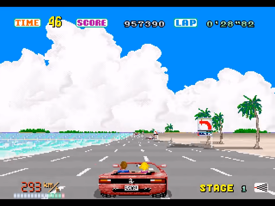 The opening stage sets the tone of the game with its perfectly blue skies, palm trees and of course the Ferrari Testarossa Spider that players were eager to be driving. I imagine many people at the time would think it sounds like the perfect conditions for a fun driving trip. With the way the stages are broken up, letting you choose your own path to different destinations, it lends itself well to creating that impression.