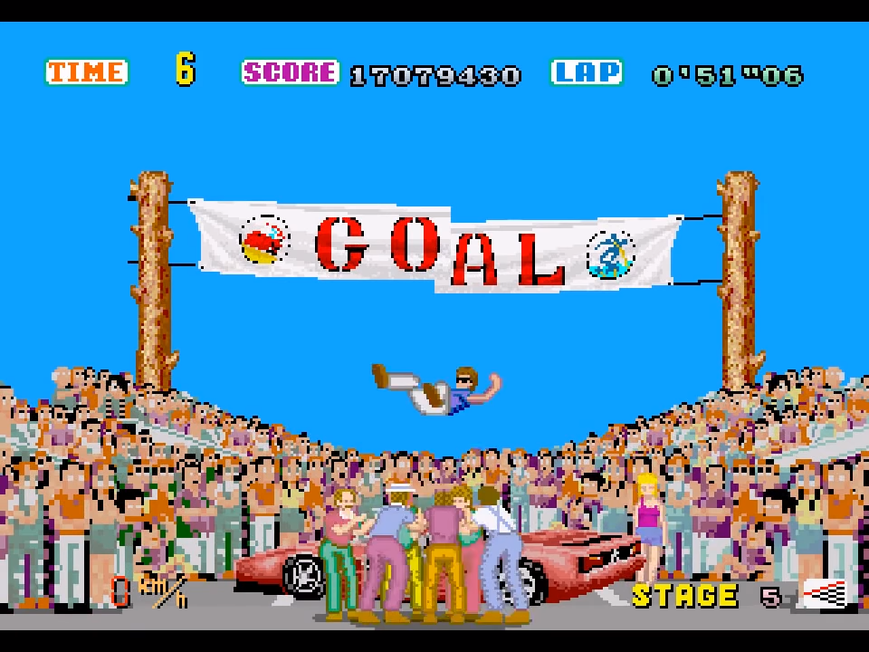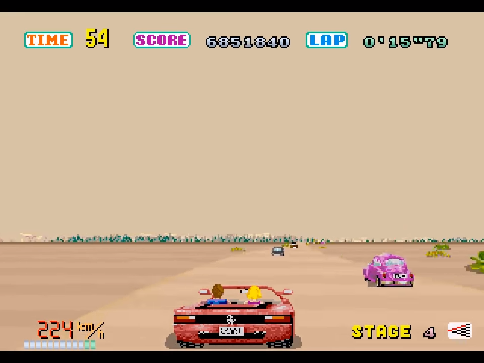 It doesn’t end there. The game makes great use of the hardware with plenty of colour and smooth movement and scaling. Nothing on home computers or consoles back then could achieve anything like it. There were times when you might see cars cross slightly into other lanes as they went around corners but that’s a minor complaint. On the musical side, prior to the game starting you could choose from a selection of music tracks, seen changing stations on a car radio. The three tracks (“Passing Breeze”, “Splash Wave” and “Magical Sound Shower”) are all good in their own right but I bet I’m not the only one who has a clear favourite to cruise the streets to.