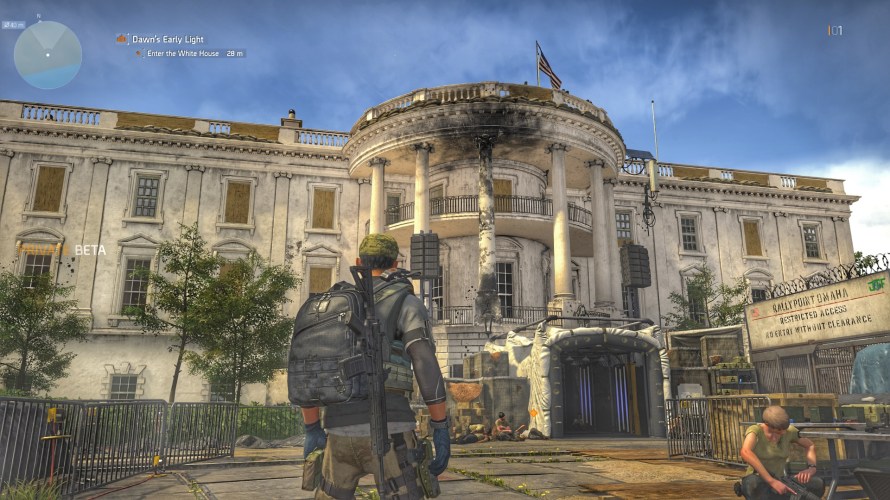 The environment feels varied. Right from the start of the beta, you’re exposed to an open area of a size that I don’t think was ever seen in the first game. Your base of operations, the settlements and even some locations I’ve seen are quite big in their own right. The way the world is presented in its broken down glory is quite a sight with some good use of overgrowth and a lot of the familiar debris ridden streets. The Division‘s take on New York did an amazing job of making you feel like you were right there on the ground and the work done here for Washington DC reinforces that feeling.