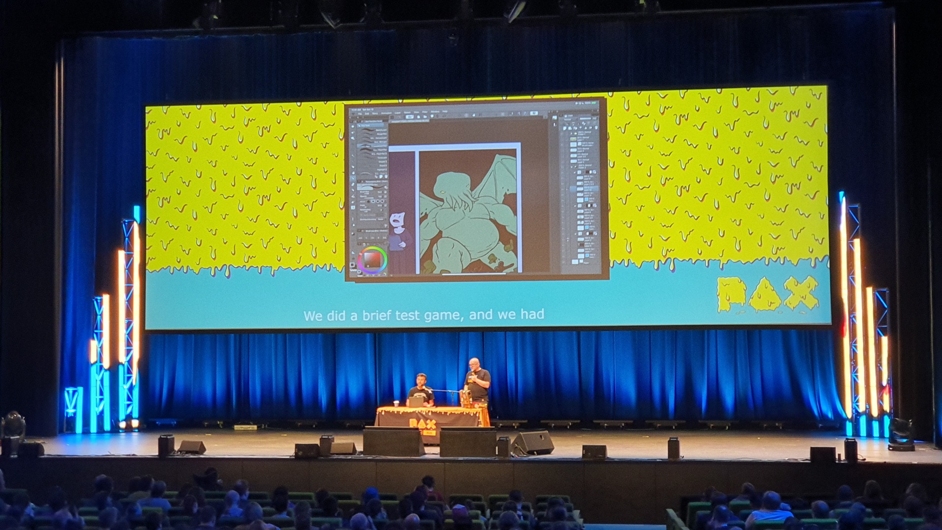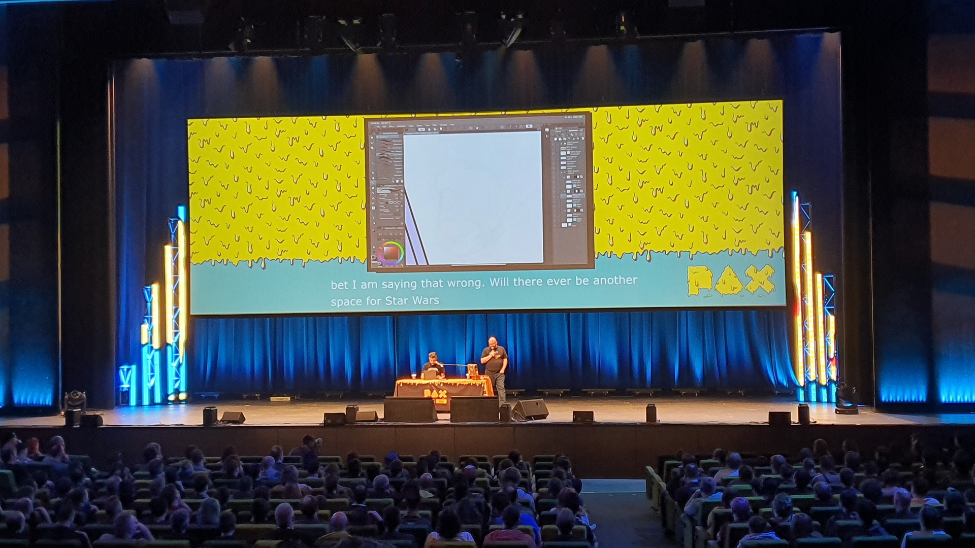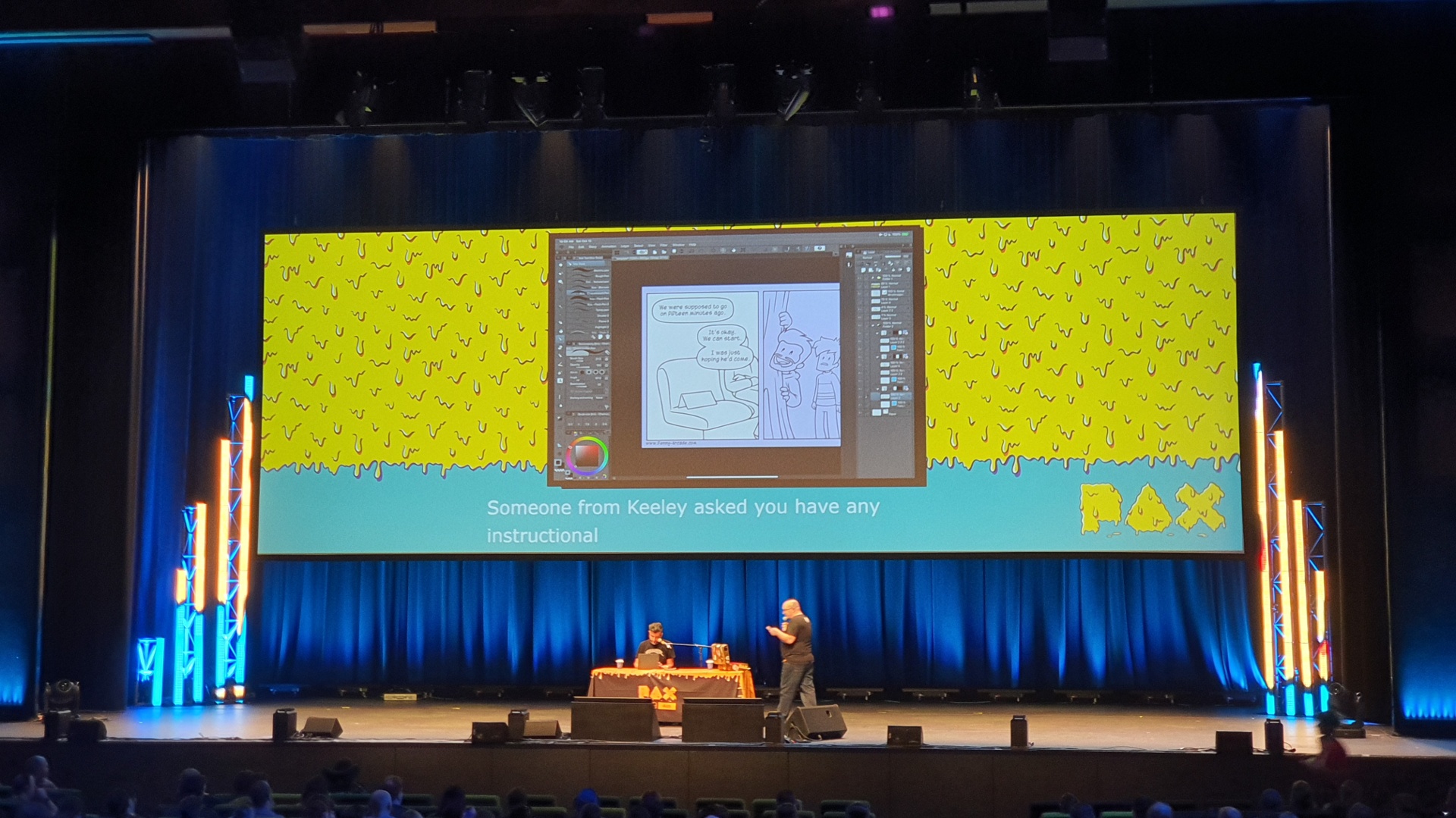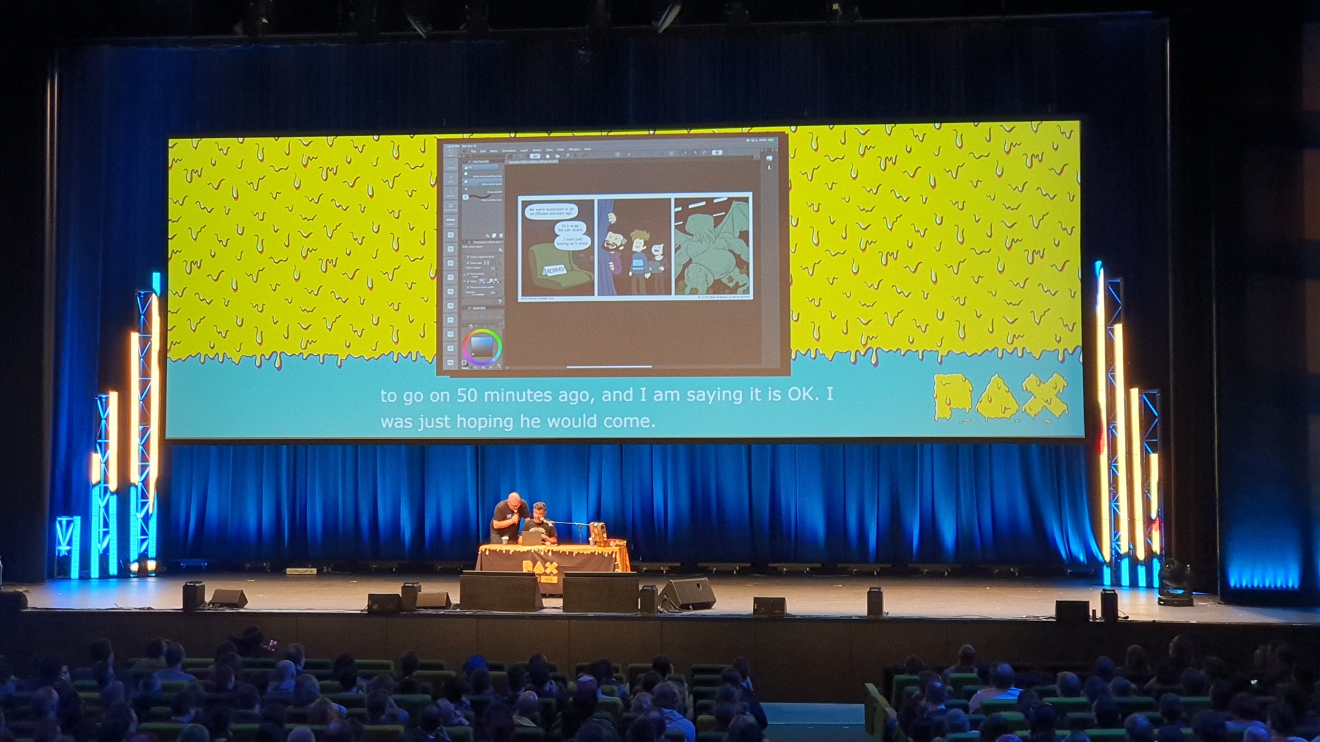 The second day of my time at PAX Australia pretty much went to plan with me heading over to another session with the Penny Arcade team – the yearly “Make a Strip” and Q&A. This year they’ve taken a significant step forward on the accessibility front with all the sessions I’ve been to having live captions. It’s a huge bit of work for the people responsible but I have to give them credit because they did well keeping up with the hosts.