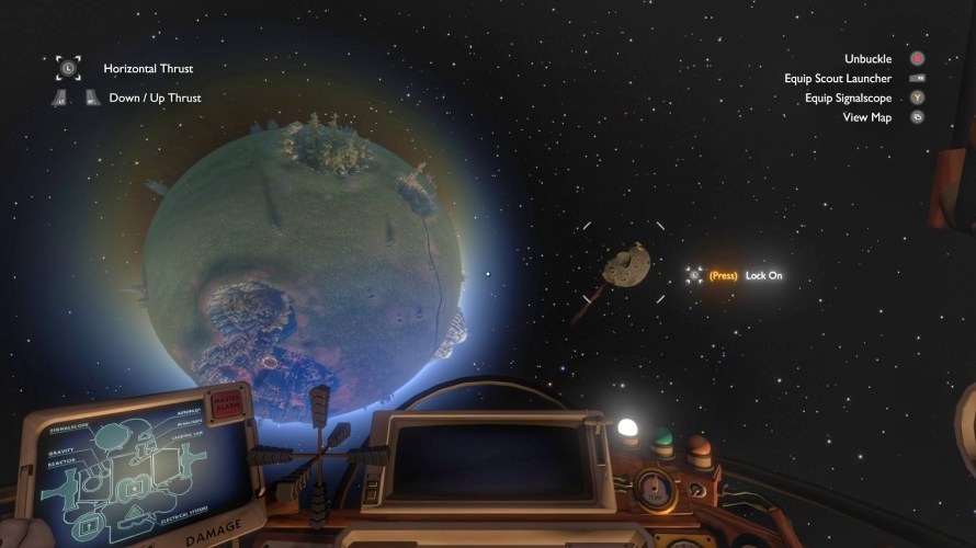 The audio worked well for me but it was the music that is the real star. If you’ve watched Firefly it’s got that same kind of western style tones to it with a lot of banjo thrown in. In the beginning that music also becomes an early beacon for helping you find direction in the game too, if you’ve played through the early “tutorials”. It turns out there are fellow astronauts who are lost out there but you can listen for their distinctive instruments to guide you. I’m wondering if they’ll get together at the end because it sure looks like a band in the making here! Following the path set by the them leads you to many of the system locations you need to visit and in the process ties it in with the overall story. As mentioned earlier I think because that music has such a strong influence in how you can play from the beginning it’s hard to separate the two.