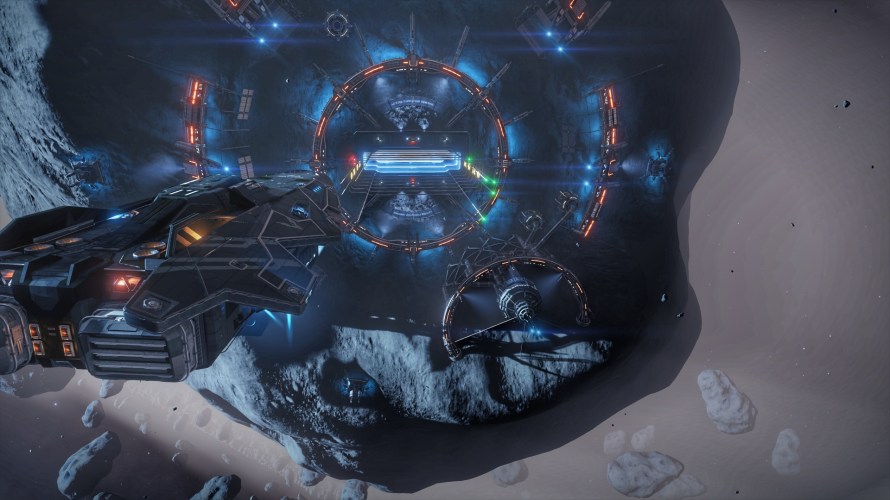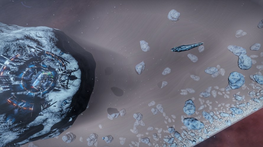 Once my modifications were complete I set off for Mammon again. 31 jumps in total which had taken about 2-3 hours of play as I was scanning every system I arrived in chasing that precious data. The extra fuel tanks did the trick too and there was nothing I couldn’t reach when taking the fastest route. Reaching my destination I was rewarded with a blue-white star that bathed the system and all its planets in a pastel blue light. The asteroid base was a cool stop too as it is situated inside a planet’s ring meaning there’s a few rocks to avoid on your way to docking. Makes for some really impressive screenshots!