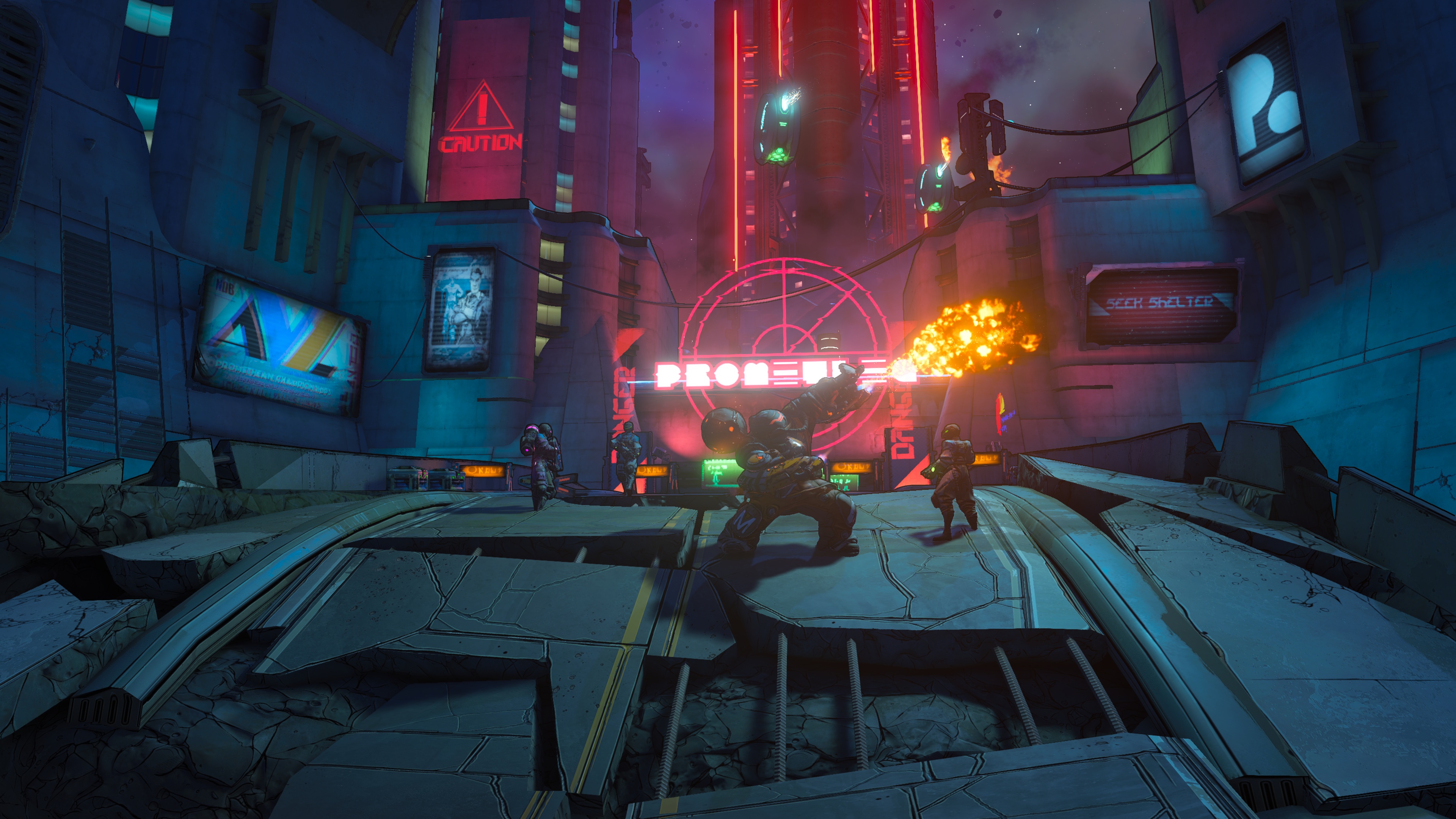 The environments in the game have been given a major touch up though you may not know it at first. Starting again in Pandora may be good for continuity but doesn’t immediately dazzle you even when playing in 4K… the cel shaded styling does look mighty fine though and the characters benefit the most from the increase with plenty of detail. A couple of hours into the game new planets do present themselves which helps a great deal in providing much needed variety in your travels. Most people likely still think of the deserts of Pandora when it comes to Borderlands (I do) so seeing this was much appreciated. One thing that hasn’t really changed is the humour which I think still borders on the juvenile side but I don’t mind it. Borderlands is the shooter equivalent of that kid in the back of the classroom that makes weird noises with their armpits: you know you shouldn’t laugh at it but sometimes when it strikes gold it’ll get a response out of you. The new villains (Troy and Tyreen Calypso) do give you a focal point for your enthusiastic aggression even if they’re played out as overly evil social media influencers. I still think the high point in writing in the franchise is still the adventure Tales from the Borderlands and it does feel like that game has had a positive impact here too… not talking a seismic shift or anything but a gentle nudge in the right direction.