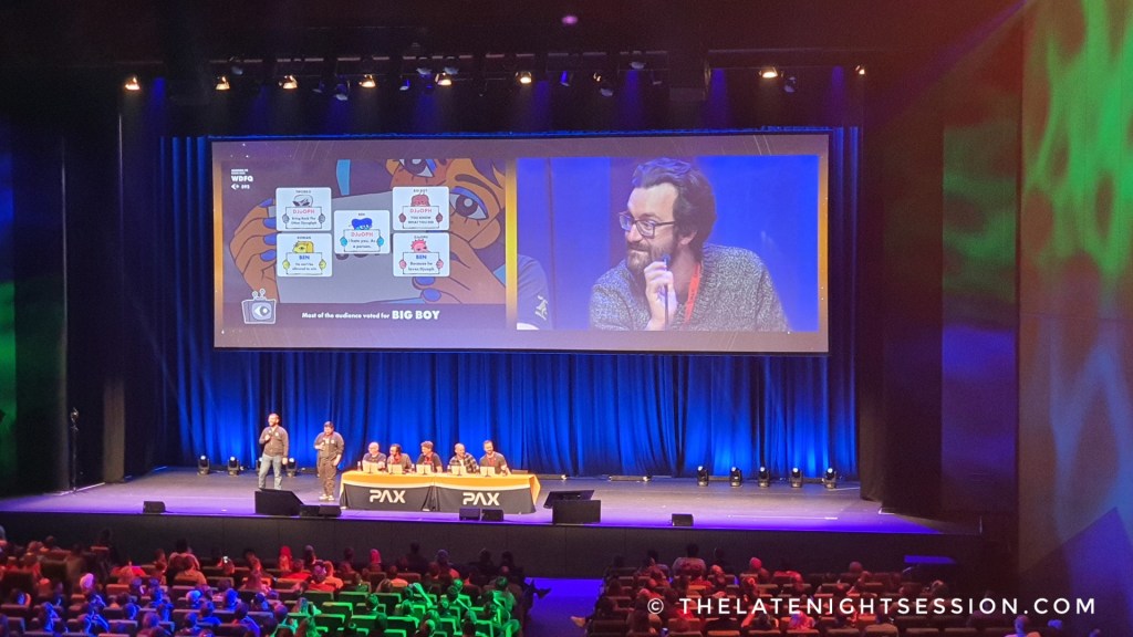 Panel attendances for the day was down to just the Jackbox Games event where the team tested out their upcoming Jackbox Party Pack 9 on PAX regulars. The games really are a good fit for these sessions with their ability for the audience to become involved through their phones. Three of the games were played in the “truth and lies” Fibbage 4, “sorting game” Quixort and “reality drama” Roomerang; of those I think Quixort was a big winner as the idea of sorting elements of a topic into the right order translated very nicely onscreen. It was also again a nice session to chill in, even with the bigger crowd in attendance.