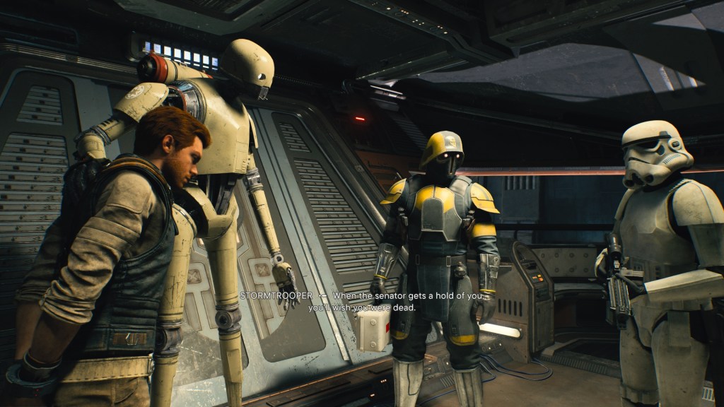 Controls feel good and I like how the basic “force pull” and “force push” Jedi abilities are by default mapped to the controller triggers making them easy to memorise and use in combat. Movement is handled well and it’s easy enough to get Cal doing what you need though in a few cases when navigating trickier terrain it’s not always clear how to leverage abilities. There’s a hint feature included where the game can prompt you if you appear stuck but I’m not sure yet of it’s usefulness.