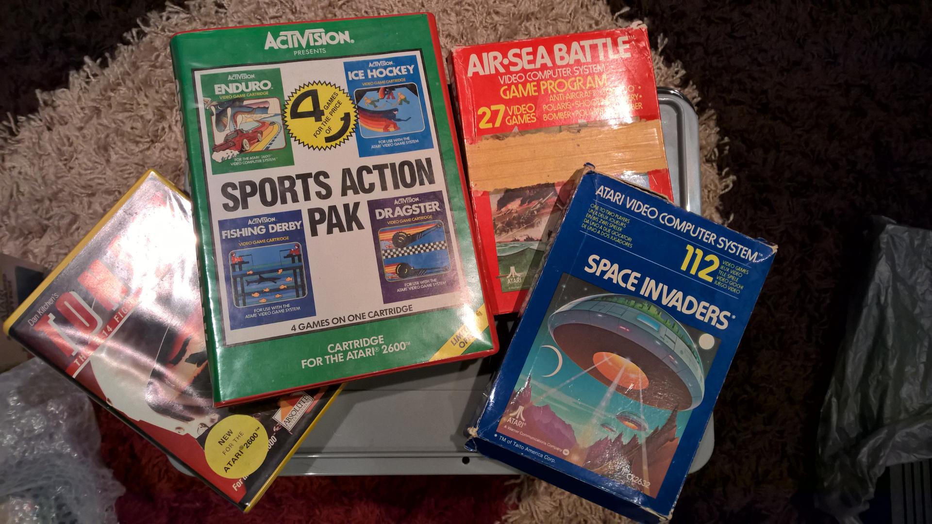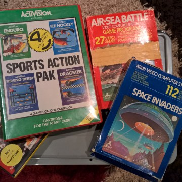 Boxed 2600 cartridges, including Space Invaders and Air Sea Battle. Leave a comment Cancel reply Δ This site uses Akismet to reduce spam. Learn how your comment data is processed.